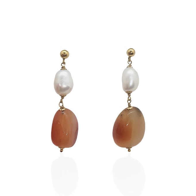 Gold Pearl And Coral Earrings 18K