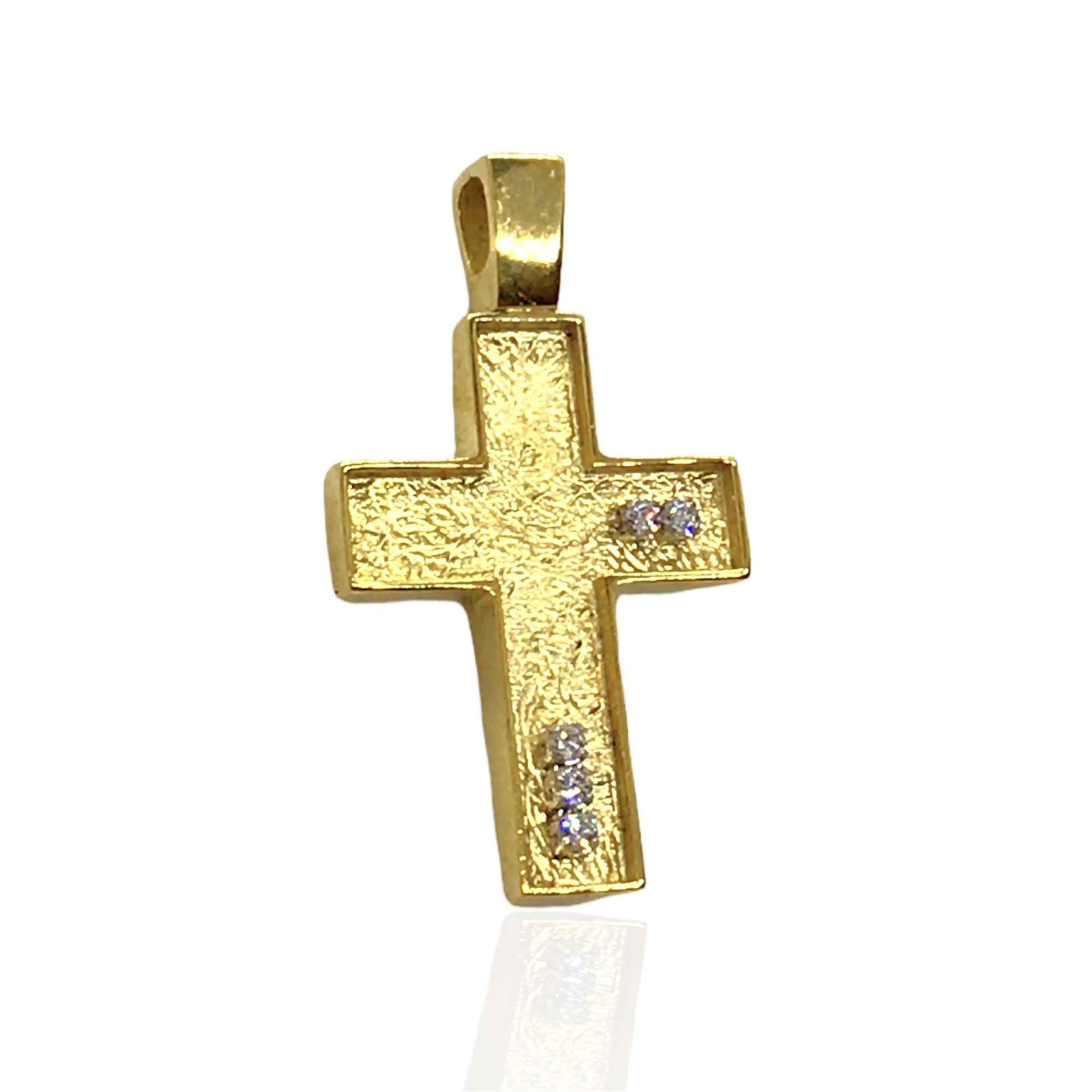 Gold women cross, 9K, attorned with cubic zirconia.