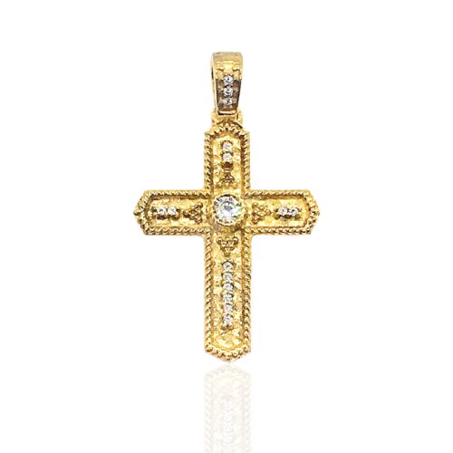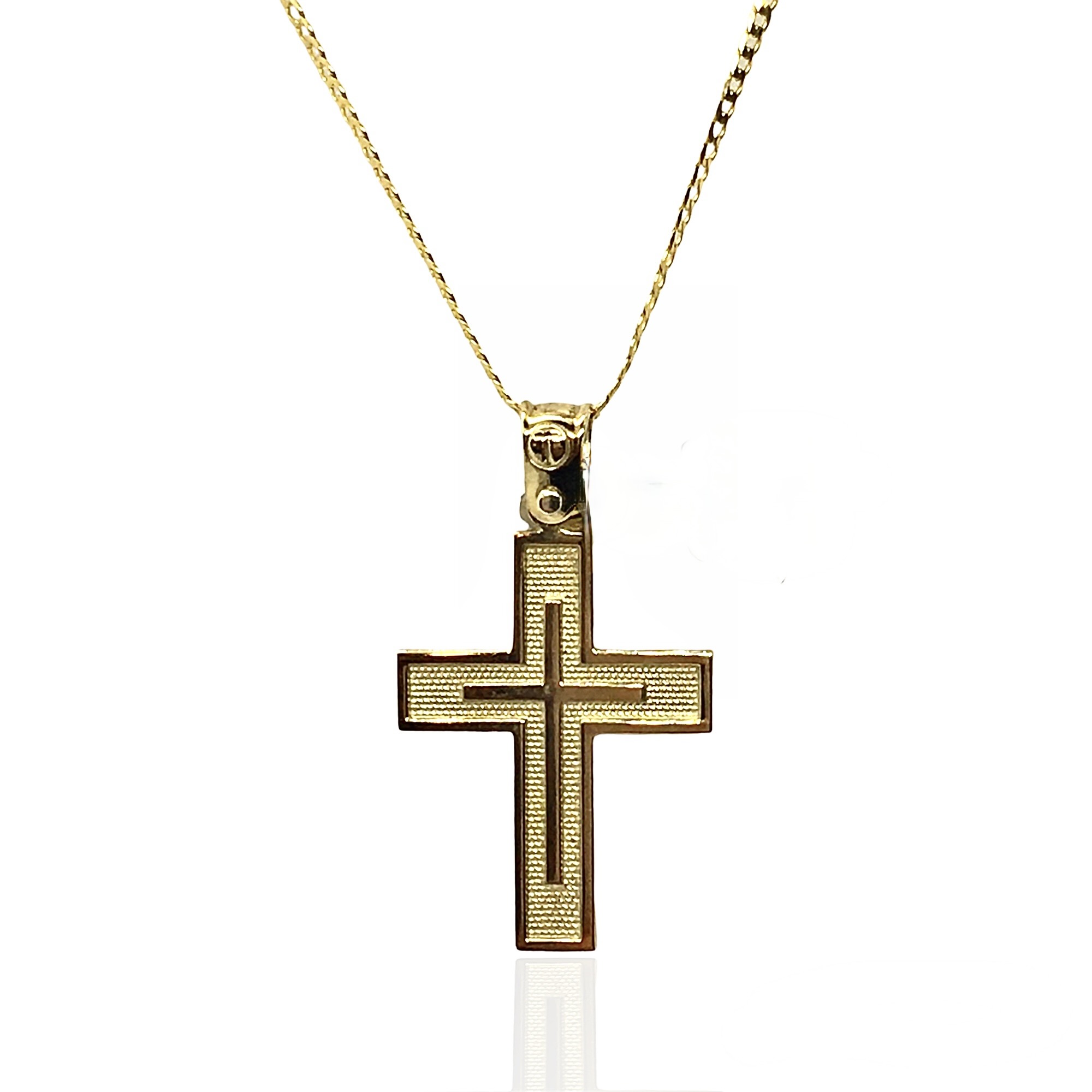 Χρυσός αντρικός σταυρός , 14 καρατίων, με ανάγλυφες και γυαλιστερές υφές.
